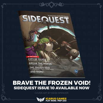SIDEQUEST is a love letter to the gaming 'zines of old, and is packed with 5e compatible content to inspire you. Whether you are a game master or player you'll find something to use within the pages of SIDEQUEST.
