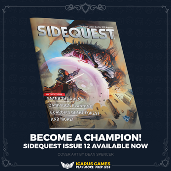 SIDEQUEST is a love letter to the gaming 'zines of old, and is packed with 5e compatible content to inspire you. Whether you are a game master or player you'll find something to use within the pages of SIDEQUEST.