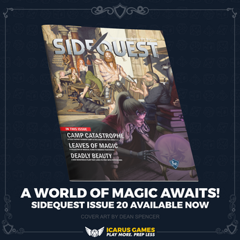 SIDEQUEST is a love letter to the gaming 'zines of old, and is packed with 5e compatible content to inspire you. Whether you are a game master or player you'll find something to use within the pages of SIDEQUEST.