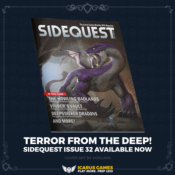 SIDEQUEST is a love letter to the gaming 'zines of old, and is packed with 5e compatible content to inspire you. Whether you are a game master or player you'll find something to use within the pages of SIDEQUEST.