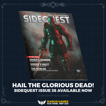 SIDEQUEST is a love letter to the gaming 'zines of old, and is packed with 5e compatible content to inspire you. Whether you are a game master or player you'll find something to use within the pages of SIDEQUEST.